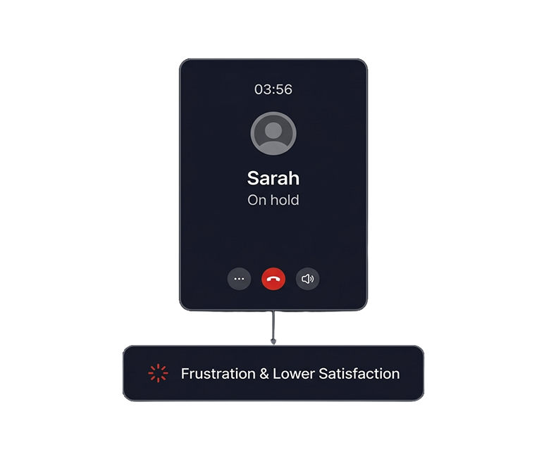 Customers expect instant responses. Being put on hold creates frustration, lowers satisfaction, and increases repeat follow-ups.